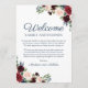 Utilice nuestras tarjetas de bienvenida rústicas de la marina, marsala y boda de flores rosadas para ayudar a sus huéspedes fuera de la ciudad y hacerles saber más sobre su itinerario boda. ... Utilice la herramienta "Personalizar esta plantilla" de Zazzle para introducir la información de la ceremonia de su boda. Si necesita cambiar la ubicación de los cuadros de texto, el color de la fuente o el tamaño sólo tiene que hacer clic en el botón "Haga clic para más personalizares" para cambiar esas cosas. No olvide visitar nuestra amplia selección de artículos de coordinación navegando por la colección Rustic Navy y Marsala Floral Boda.