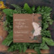 Invitación de boda de grullas japonesas vintage tonos tierra. Tema de boda de galería de arte asiático grulla mágica encantada amor de cuento de hadas.
