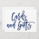 Letrero de boda elegante con letras a mano que dice "Tarjetas y regalos" en azul marino