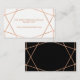 Estas modernas tarjetas de la web boda presentan un diseño geométrico rosa de oro falso sobre un fondo blanco. El reverso de la tarjeta es negro.