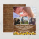 Invitaciones de boda rústicas asequibles con un fondo de madera chic de campo, 4 fotos de la pareja comprometida, girasoles amarillos brillantes, luces de cuerda y una plantilla de boda moderna que es fácil de personalizar. NOTA: Estas son hojas de papel económicas, no vienen con sobres. Sin embargo, este diseño se puede transferir a tarjetas de invitación que sí vienen con sobres.