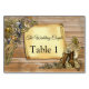 tarjetas de número y nombre para cada mesa con textura de madera y estilo gótico - dorado y latón steampunk con un pergamino vintage