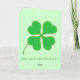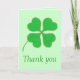 Pintura de un trébol verde, trébol de cuatro hojas, recortado en puntos dorados, con espacios para su texto, impreso en tarjetas de agradecimiento de boda. Personalice fácilmente el texto en los formularios de plantilla.