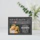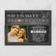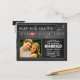 Tarjetas de calendario de pizarra para guardar la fecha - cuenta con un fondo de pizarra, texto vintage y elementos modernos. El diseño cuenta con un corazón de pizarra para ingresar las iniciales de la novia y el novio. Las tarjetas de guardar la fecha también cuentan con un calendario que puedes personalizar con corazones para tu mes y fecha. Por último, las tarjetas postales también cuentan con una demostración que puedes cambiar a la foto que desees.