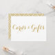 Letrero de boda divertido y caprichoso de tarjetas y regalos con caligrafía moderna dorada. Artículos similares están disponibles.