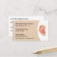 Tarjetas de visita para citas con clientes de audiólogo u ofolaringólogo creadas con una plantilla de cita para personalizados y gráficos de oídos al revés, utilizando ambos lados de la tarjeta de perfil de negocios.