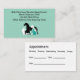 Moderno y simple recordatorio de cita en el hospital veterinario para animales personalizados tarjetas de visita combinación en un diseño editable con gráfico de una variedad de animales y mascotas en el fondo y plantilla de recordatorio de cita mostrada en la espalda para que usted esté haciendo uso de ambos lados.