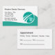 Tarjetas de recordatorio de citas de oficina para dentistas de estilo moderno que puede entregar a sus pacientes creadas con un logotipo de color y diente verde azulado que puede utilizar en nuestras tarjetas junto con una plantilla de cita que es fácil de leer y usar.