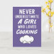 **Título:** Tarjetas de Cocina Rosadas y Divertidas para Chicas y Niños - Nunca Subestimes a una Chica que Ama Cocinar Tarjeta de Felicitación