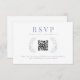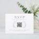 Captura la elegancia y el romance con estas exquisitas tarjetas de respuesta RSVP azul floral y azul claro, diseñadas para una bohemia rústica de otoño/invierno. Con una impresionante y animada corona de flores silvestres de color azul verdoso y flores secas de prado crema, estas tarjetas incluyen código qr y monograma en la parte posterior.