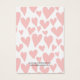 Personalizar esta encantadora impresión de dos caras estilosas tarjetas de sonido de fondo fresco y elegante con un patrón de corazones rosados en un fondo blanco. Diseño limpio y contemporáneo. Le das un puñetazo a tus aros en dos pequeños puntos. Por favor, tenga en cuenta que no hay agujeros. Es perfecto para pendientes de ángulo. Esta tarjeta está diseñada como una plantilla para su fácil personalización, donde escribe en nombre de su negocio y una dirección de sitio web. No olviden también el personalizar en la parte trasera.