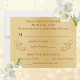 Tarjetas de RSVP doradas con menú de elección de comida o su texto o ELIMINAR. 50 aniversario de bodas. LLAME a la diseñadora Linda: 239-949-9090 EST para un servicio GRATUITO de diseño personalizado para sus invitaciones personalizadas para el 50 aniversario de bodas, suministros, decoraciones y regalos. Cualquier año, colores, diseños, según estén disponibles y MILES de productos. Elija entre una hermosa variedad de tipos de papel. Se muestra en semi brillo o sorprenda a sus invitados seleccionando las tarjetas de respuesta con brillo de perla. RSVP con opción de menú o eliminar o su texto.