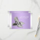 Zapatos de tacón alto morados lavanda elegantes con brillo plateado blanco plantilla de RSVP para fiesta de cumpleaños y evento. Esta hermosa RSVP de fiesta de cumpleaños púrpura lavanda se personaliza fácilmente para su evento simplemente eligiendo el botón "¡Personalízalo!" para comenzar a agregar los detalles de su evento, estilo de fuente, tamaño y color de fuente y redacción. Tenga en cuenta que todos los stickers, tarjetas y diseños de invitaciones que encontrará en Zazzle son gráficos impresos sin joyas reales, lazos, partes o piezas en relieve, estampados o agregados.