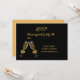 Una tarjeta de confirmación de boda elegante y con estilo que presenta negro y dorado con tema de copas de champán. El texto personalizable está en escritura elegante contra un fondo negro. Esta tarjeta presenta dos copas de champán burbujeantes en un brindis por la nueva pareja. Un diseño simple y elegante para su día especial. Busque las invitaciones a juego en el mismo estilo.