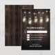 Tarjetas de respuesta de boda de frasco de albañil de madera rústica de granero - perfectas para bodas de verano, otoño, primavera o invierno - cualquier temporada es apropiada. Si estás teniendo una boda con temática de luciérnagas, campo o rústica con frascos de albañil y luces de cuerda, entonces este diseño tiene lo que necesitas. El diseño presenta madera de granero reciclada como fondo y frascos de albañil iluminados colgando con luciérnagas o simplemente luces. Los frascos de albañil están colgados de luces de cuerda. Puedes actualizar el papel de la tarjeta o la forma de las tarjetas de respuesta anteriores.