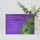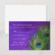 Utilice estas increíbles tarjetas de confirmación de boda con plumas de pavo real para ayudar a las personas a decirle que pueden asistir a su boda. La hermosa pluma de pavo real es un diseño de naturaleza muerta brillante con el fondo de lámina púrpura. Estas hermosas invitaciones con plumas. agregan un toque especial a su día increíble. Estas tarjetas de confirmación vienen con sobres blancos.