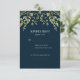 Elegantes tarjetas de confirmación para coordinar con nuestra colección de boda de hojas doradas sobre fondo navy con una línea adicional para cualquier requerimiento dietético. Artículos coincidentes disponibles en esta colección.