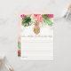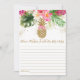 Estas adorables Tarjetas de Consejos de Novias son una divertida actividad en la Ducha de Novias que se convierte en un placer eterno para la futura novia. Simplemente pasen por ahí durante la ducha nupcial, donde los huéspedes se divertirán llenándolos con sus deseos y palabras de consejo para la novia y el futuro novio. El diseño presenta flores acuáticas tropicales de verano con un confetti falso purpurina de oro y una piña falsa purpurina de oro. Los textos en tonos rosa y dorado completan el bonito diseño floral.