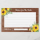 Estas tarjetas de consejo rústicas para la ducha de matrimonio presentan un diseño de girasol acuático sobre un fondo de madera. También hay productos de coincidencia disponibles.