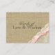 Burlap rústico, encaje vintage y arco rosado decoran estas tarjetas de consejo para bebés con ducha. "palabras de amor y sabiduría" tarjetas de juego fiesta para complementar nuestras invitaciones. Hacer que los invitados escriban su mensaje con tarjeta y usar tarjetas para dibujar nombres para premios.
