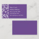 Utilice esta tarjeta de contacto personal para entregar a nuevos conocidos, contactos de negocios o tarjetas de intercambio con alguien con quien desee mantenerse en contacto. Diseño sencillo con flor floral para un toque femenino sobre un fondo morado.