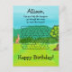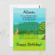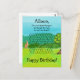 Diversión y lindo canguros y hojas, rompecabezas laberinto, está impreso en postales personalizadas con un tema de cumpleaños. El nombre del niño se imprime en la parte superior; debajo está la pregunta, ¿Puedes ayudar al canguro a atravesar el laberinto para llegar a las hojas?. Hay un árbol frondoso esperando al otro lado del laberinto. Debajo de la escena del laberinto, está Feliz Cumpleaños. Todas las opciones de texto son fáciles de personalizar en los formularios de plantilla. Gracias por comprar en MazePuzzles en Zazzle.