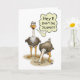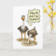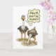 Una tarjeta de cumpleaños divertida del dibujo animado de uces par de la avestruz… una cuyo la tiene es principal en la arena. El interior de la tarjeta la lee "es apenas otro cumpleaños… que le desea feliz!"