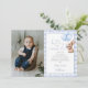 Esta encantadora tarjeta de agradecimiento de cumpleaños presenta un conejito adorable sosteniendo globos y un fondo de gingham azul. Diseñado por Thisisnotme©