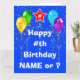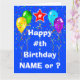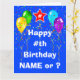 Tarjetas de cumpleaños personalizadas por edad para niños a adultos. Cambiar los COLORES de fuente y fondo. Seleccione esta tarjeta de cumpleaños grande o las tarjetas de felicitación estándar de cumpleaños para niños a adultos. Confetti divertido brillante viniendo a los globos brillantes alegres con el mensaje GRANDE BREVE BURDE tarjeta de cumpleaños feliz con la EDAD (dentro de la Estrella Roja) y con el mensaje de cumpleaños feliz junto con el NOMBRE o TU TEXTO o BORRAR cualquier texto o diseño. Tarjetas de cumpleaños grandes personalizadas con su TEXTO o cambiar la ocasión también. Tarjetas de cumpleaños totalmente PERSONALIZABLE. TRANSFERIR este divertido diseño de tarjetas de cumpleaños feliz a MILES de otros suministros de fiestas de cumpleaños, decoraciones, regalos y más. Para realizar una Personalizar adicional del diseño: debajo del último cuadro de plantilla de texto o imagen, haga clic en "Editar usando la herramienta de diseño" Seleccione la parte de diseño del texto que desea editar (cada capa está en el lado izquierdo) y las HERRAMIENTAS están en el lado derecho. Para cambiar los colores de fondo, haga clic en el botón "EDITAR" situado debajo de las capas (a la izquierda) para cada lado de un producto. Vea muchos más Personalizables completos, cree una tarjeta de cumpleaños feliz con el nombre y la edad en línea, suministros de cumpleaños, decoraciones y regalos AQUÍ: https://www.zazzle.com/store/littlelindapinda/products?cg=196065483903420255&rf=238147997806552929