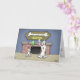 Tarjeta de cumpleaños Personalizado de un perro padre y su hijo admirando un trofeo de hueso. En el interior de la tarjeta se lee "Todo perro tiene su día... ¡Espero que sea suyo Feliz cumpleaños!"