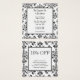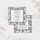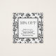 Un elegante salón de personalizado, una cafetería o un restaurante con tarjeta de descuento con letras de guión y letras de serif para su dirección e información sobre un elegante patrón de damasco negro sobre blanco, y letras más grandes en la parte posterior para su información de descuento.