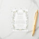 Tarjeta de detalles de boda de jardín de primavera o verano con corona de hojas de eucalipto y flores blancas de botánica elegante.