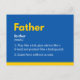 Esta tarjeta del día de los padres superhéroes en amarillo y azul tiene una definición del sustantivo "Padre" (1.Jugar como un niño, dar consejos como un amigo y proteger como un guardaespaldas. 2.Superhéroe sin capa). Esta feliz tarjeta del padre es única y tan reflexiva. Perfecto para mostrar tu amor y tu gratitud en el día del padre. A cualquier padre le encantará esta mejor tarjeta de papá. :) ¡Qué suerte! Tienes cuatro opciones de color para esta tarjeta del día del padre. ¡Feliz día del padre!