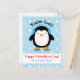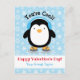 Postal con pingüino, ideal para el intercambio de tarjetas de el día de San Valentín para niños.