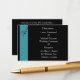 Las tarjetas de guía boda Aqua elegance son una forma práctica de ayudar a que su invitado boda llegue a su ceremonia y lugar de recepción. La parte delantera de las dos tarjetas laterales tiene un fondo negro con una verde azulada raya acuática que baja por un lado y que tiene un diseño floral negro en la parte superior de la raya. La parte posterior de las tarjetas de dirección ofrece una gran generación en una plantilla prefabricada que se puede utilizar para insertar todos los detalles de dirección necesarios. Utilice la función "personalizar it" para cambiar el color y/o estilo del tipo de letra.
