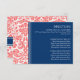 Tarjetas de dirección boda Damasco azul coral