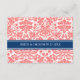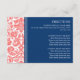 Insertos de tarjeta de dirección para boda en moda rosa naranja de melocotón elegante y moderna, azul marino oscuro y blanco y patrón vintage floral de damasco clásico. Personalizar estas tarjetas con las indicaciones de su boda u otra información para incluirlas con sus invitaciones de boda, también perfecto para fiestas de aniversario o fiestas de cumpleaños. Disponible en una amplia gama de productos bodas a juego.