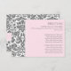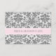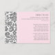 Insertos de tarjeta de dirección para boda en moda gris y blanca elegante y moderna de color rosa claro, carbón negro y carbón vegetal oscuro y patrón vintage floral de damasco clásico. Personalizar estas tarjetas con las indicaciones de su boda u otra información para incluirlas con sus invitaciones de boda, también perfecto para fiestas de aniversario o fiestas de cumpleaños. Disponible en una amplia gama de productos bodas a juego.