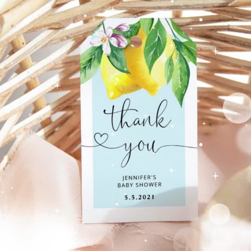 Tarjetas de ducha de bebé con limón azul y señal de regalo. Elementos coincidentes disponibles.