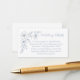 Estas elegantes tarjetas de encierro de boda presentan una ilustración floral en esquina de azul en polvo combinada con tipografía clásica serif y script sobre un fondo blanco crujiente, creando una forma refinada de compartir direcciones, alojamiento o detalles adicionales con sus invitados.