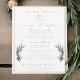 Estos detalles de boda en blanco, negro y dorado, muy elegantes, están diseñados con ramas de oliva acuarelas pintadas a mano. Personalizar con los detalles de su día especial para invitaciones atemporales y memorables.