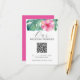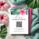 Mejore la elegancia de su papelería boda tropical con nuestras hermosas tarjetas de presentación, mostrando una impresionante flor de hibisco acuático con hojas de palma de monstera en tonos rojos y verdes. Estas tarjetas ofrecen campos de plantilla de personalizable, lo que le permite agregar su propio mensaje personalizado y un código QR enlazando a su sitio web boda. Completando perfectamente el tema de tu día especial, estas tarjetas son parte de un juego de invitaciones matrimoniales a juego disponible en www.zazzle.com/dotellabelle. Descubra la colección completa e infunda su boda con un toque de sofisticación y color.