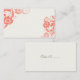 Tarjetas de Escort Floral Rojas diseñadas por Colorful Designs Inc. Copyright 2014. Bonitas tarjetas de acompañamiento impresas que se pueden personalizar para el día de tu boda. En el lado frontal de las tarjetas hay un lugar donde escribir el número de tabla. En la parte trasera, hay espacio para que el nombre de cada invitado esté escrito a mano. También puede imprimir una etiqueta con el nombre de su invitado y colocarla en las tarjetas de acompañantes.