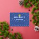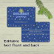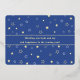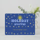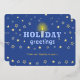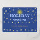Esta tarjeta tiene un fondo azul profundo, una dispersión de estrellas y dice "Saludos de fiesta" en la parte delantera. La 'i' de Fiesta es una vela que brilla intensamente. El mensaje en lámina de oro "De nuestra familia a la tuya" se puede editar para tu propio saludo preferido. En la parte posterior hay una dispersión similar de estrellas y texto listo para que lo personalices con tu propio mensaje. (O puedes usar el "Deseándote luz y alegría y felicidad en el próximo año!" predeterminado).