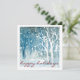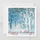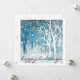 Escena rústica de invierno nevado pintada con pinturas de acuarela con un saludo festivo Felices Fiestas no denominacional en letra roja.