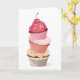 Amo los quequitos, entonces este diseño es perfecto para ti. Es una buena pila de quequitos. Son tres quequitos apilados unos sobre otros. Todas tienen una hermosa apariencia de glicinia y son muy sabrosas. Este diseño de pila de cupakes se ve genial en estas tarjetas de felicitación
