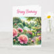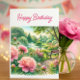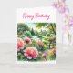 Esta exquisita tarjeta de felicitación de peonía rosa presenta una encantadora ilustración de acuarela de un entorno de parque con un banco y un sereno elemento de agua. La parte frontal de la tarjeta lleva un sincero saludo de "Feliz Cumpleaños", mientras que el interior ofrece espacio para un mensaje personalizado, lo que la convierte en una tarjeta verdaderamente reflexiva y memorable para cualquier ocasión especial.