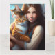Tarjeta de cumpleaños de NIÑA CON GATOS. APROPIADA PARA ENMARCAR.