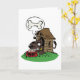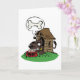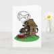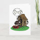 Si te gustan los perros, entonces te va a encantar el diseño de un perro en su casa de perros soñando con un hueso. El perro está medio a mitad fuera de la casa del perro con un tazón de comida delante de él. Sin embargo, el perro está soñando con otras cosas y tiene un hueso en una burbuja de sueños sobre él. El diseño de esta casa de perros se ve muy bien en estas tarjetas de felicitación