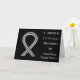 La tarjeta de saludo o nota muestra la imagen de una cinta de pintura de conciencia en blanco y negro que representa la conciencia para acabar con el racismo. La tarjeta dice "Espero y apoyo para ()" ¡Añada tus propias palabras o mensajes opcionales a la tarjeta de saludo para los protectores personalizados de arte para crear conciencia! También puede eliminar el texto de las tarjetas de notas sólo de arte. Las tarjetas de felicitación artística de la cinta de reconocimiento en blanco y negro se pueden personalizar con mensajes personalizados para crear una gran conciencia de la causa de las tarjetas de arte para recaudadores de fondos, regalos de concientización u otros eventos especiales. Dé esta tarjeta de arte como regalo de la cinta de sensibilización para cualquier ocasión.